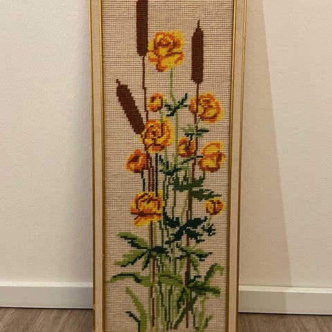 Myynnissä kuvan mukainen vanha käsin tehty kanavatyötaulu kehystettynä. Koko 46x36,5 cm.