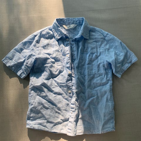 157 Pellavainen (55%) kauluspaita. Koko 130. Siisti kunto. Ryppyinen vain pesun jäljiltä.