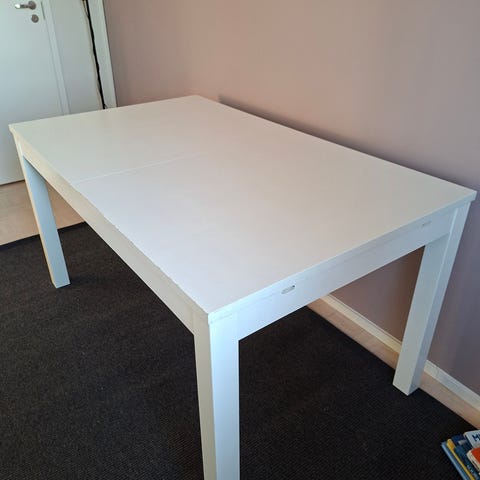 Jatkettava ruokapöytä. Koko 160x90 ilman jatkopalaa, jatkopala lisää pöytään pituutta 45cm, korkeus noin 77cm. Pöydän kunto hyvä. Nouto Klaukkalasta, pöytä on osittain purettuna.