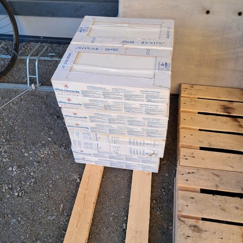 Lattialaattaa n. 12,5-13 m2 esim. kylpyhuoneen lattiaan. Laatat uusia, 1,44m2 pakkauksia 9.