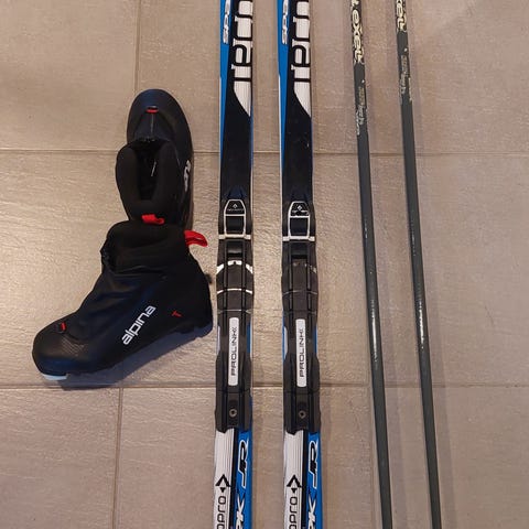 Atomic lasten pitopohjasukset 140cm ja sauvat Apollo Rex 113cm. NNN-siteet.