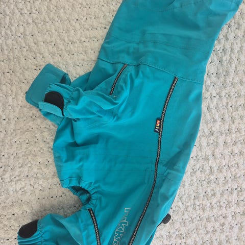 Musta, heijastavilla yksityiskohdilla, koko selän mittainen vetoketju helpottaa pukemista kura/sadehaalari. Koko 30.