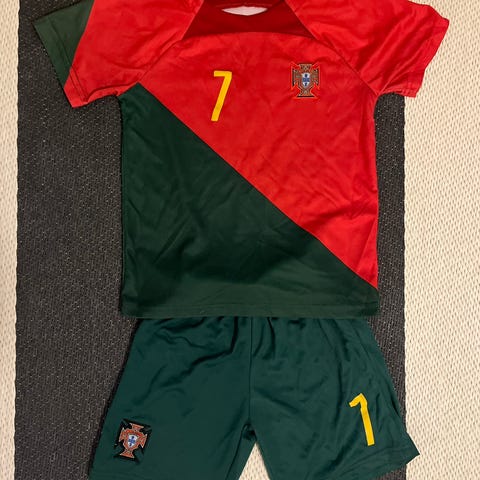 Jalkapallo peliasu, paljon langannousuja varsinkin paidassa mutta menee vielä hyvin esim pihapeleissä. Käytetty koossa 128. Lisäksi shortsit, ne vähän isommat kokoa 140.