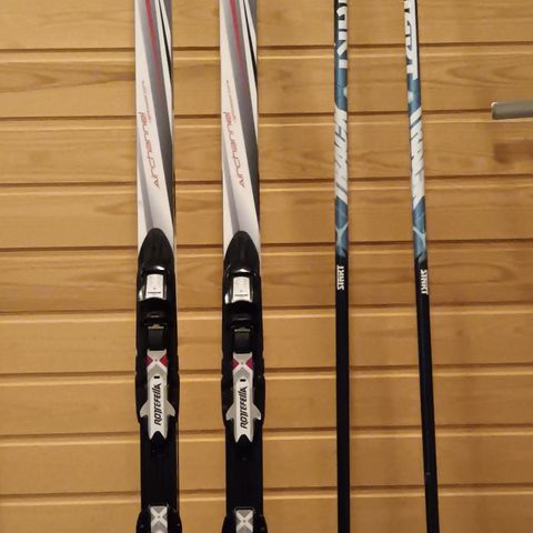 Luistelusukset sns siteet. Toisen suksen pohjassa ura mikä näkyy kuvassa.