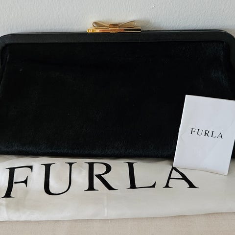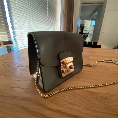 Furla Metropolis nahkainen laukku punaisessa värissä. Laukussa on ketjuhihna ja metallinen lukko.