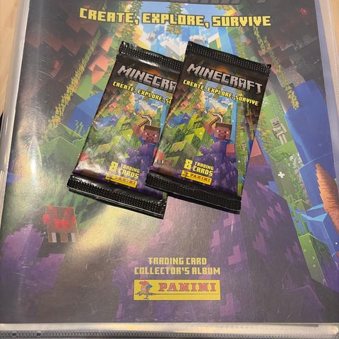Panini Minecraft osittain täytetty keräilykorttikansio ja 2 avaamatonta pakettia