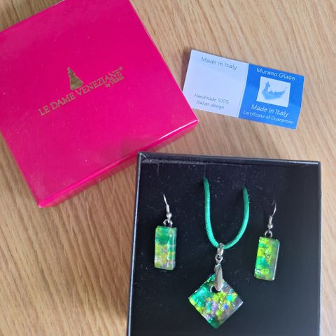 Kuvassa näkyvät Carlo Orsini kaulakoru ja korvakorut kauniissa rasiassa. Ketjun pituus noin 36-40 cm, näkyy kuvissa. Nouto tai toridiili.