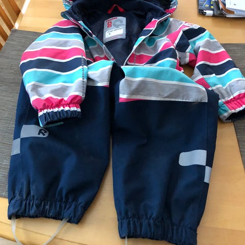 Siisti haalari vaatii pesua ei ole pesty käytön jälkeen. Polvissa ja pepussa vähän käytön jälkeä hihansuissa pientä jälkeä myös, heijastimet hieman kuluneet. Jalkalenksut ehjät, reikiä en löytänyt.