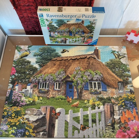 Ravensburger merkkinen laadukas palapeli 1000 palaa. Keiju, sienet, tikka, orava, perhonen, pöllö, lyhty, leppäkerttu, kukat ja talo on pelin kuvassa metsän keskellä. Tyttö kerää sieniä koriin. Uutena ostettu ja kerran tehty uudenveroinen laadukas palapeli. Kaikki palat tallella.