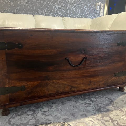 Hyväkuntoinen, tummanruskea arkkupöytä. Nouto Mäntsälästä.