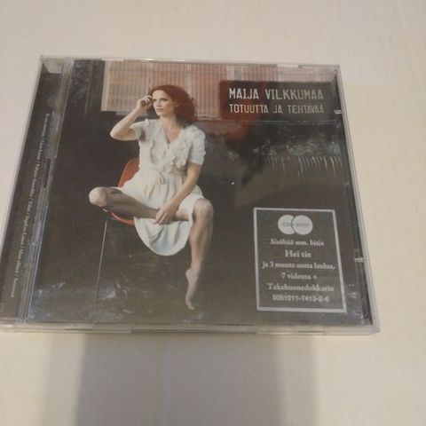 Maija Vilkkumaan Kunnes joet muuttaa suuntaa -CD. Kansilehdessä Vilkkumaan signeeraus ja omiste.
