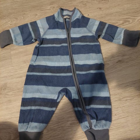 Myydään hyväkuntoinen ja ehjä sininen hupullinen fleece-haalari. Neon vihreät yksityiskohdat. Tumpuiksi käännettävät hihan ja lahkeen suut.