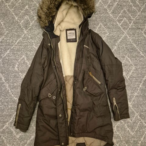 Erittäin hyvässä kunnossa oleva Didriksonsin Tindra parkatakki. Takin vetoketjuissa ja rinnassa olevat Didriksons tekstit ovat heijastinmateriaalia. Myös hihansuissa käännettävät heijastimet. Selkäpuolella oleva merkki myös heijastinmateriaalia. Takki on erittäin lämmin, sopii kovemmillekin pakkaskeleille. Kainalo-kainalo n. 52 cm päällypuolelta mitattuna. Olka-helma n. 96 cm takin etupuolelle mitattuna, takaa keskeltä n. 7 cm pidempi. Ovh. 220 €. https://www.blacks.co.uk/16048109/didriksons-womens-tindra-puff-parka-16048109