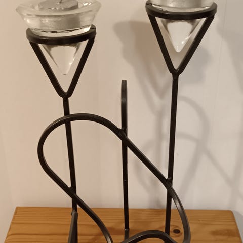 Valkoinen metallinen viinipulloteline kolmelle pullolle. Korkeus n. 49 cm.