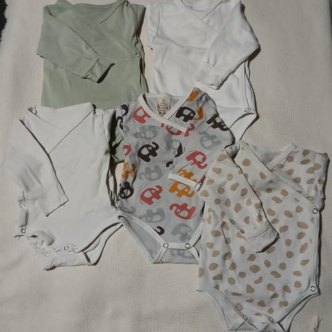 Siistikuntoiset vauvan kietaisumalliset bodyt kokoa 50/56.
