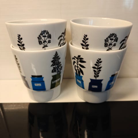 Myydään kuvissa olevat Röstrandin valmistamat Grön Anna - sarjan kahvikupit 4kpl