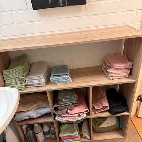 Luonnonvärinen 5-tasoinen puuhyllykkö, ajaton ja helposti monenlaiseen tilaan sopiva. Esimerkiksi varastoon, kodinhoitohuoneeseen, keittiöön, työhuoneeseen. Korkeus 171 cm. Leveys 75 cm.