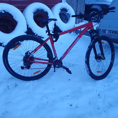 Pyörä on ns, Mullet eli takana 27.5” kiekko uudehkolla maxxis Rekon 2.6” leveät ja edessä taas 29”x 2.25” leveät kumit Maxxis Ikon UUdet. Tekee maastoajosta huomattavasti ketterämpää.