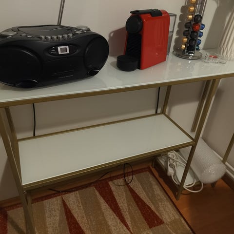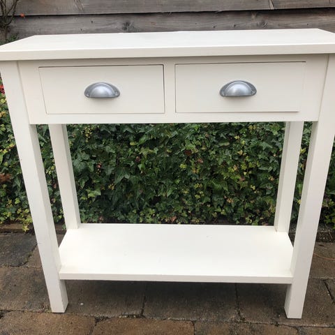 Myydään kaunis, valkoinen hyvässä kunnossa oleva sivupöytä. Ei kolhuja, ei naarmuja. Hinta 75e. (Alkuperäinen hinta 179e). Ole hyvä ja tee tarjous.