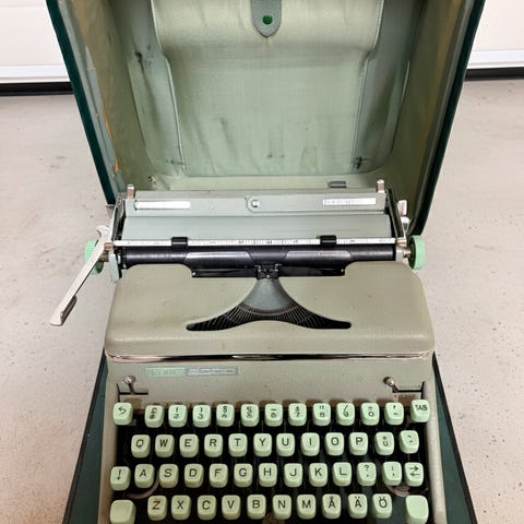 Myydään kirjoituskuntoinen mekaaninen kirjoituskone. Valmistusvuosi 1936. Mukana puinen säilytys-/kantolaatikko, koneeseen valmiiksi asennettu uusi mustenauha sekä virheenkorjauskirjaimia.