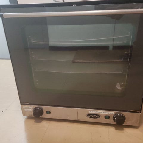 Täydellinen uuni pienemmälle keittiölle, kahvilaan tai catering-pisteelle. Paistaa tasaisesti useita peltejä kerralla, kiertoilma ja mekaaninen ajastus. Helppokäyttöinen ja nopea lämpenemään.