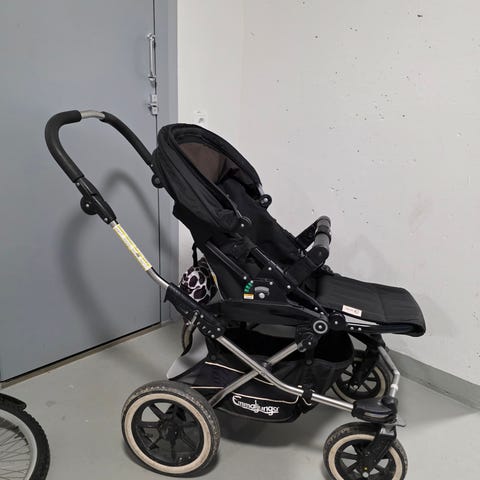 Emmaljunga nxt90 lastenrattaat, joissa runko metallin värinen ja istuin musta Ergo-mallinen eli ns. kuppi-istuin