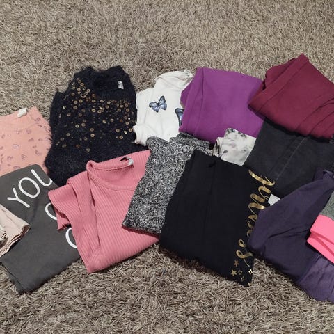 Myydään vaatepaketti koossa 134/140. Tykättyjä ja pidettyjä paitoja ja leggingsit. Siistejä ja ehjiä, joskin käytön jälkeä saattaa löytyä. Pupupaidassa tahroja, joita en ole yrittänyt poistaa. Hinta yhteensä 2 euroa.