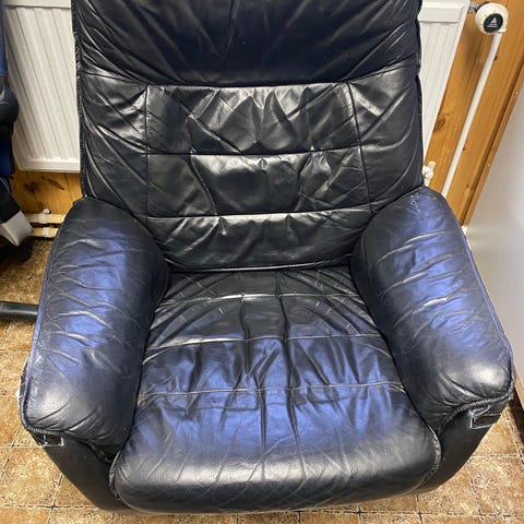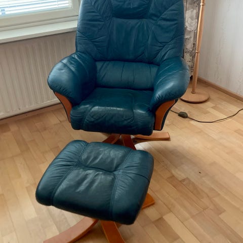 Musta nahka lepotuoli ja rahi