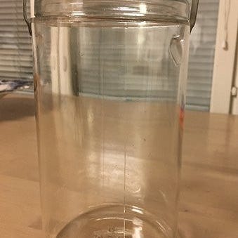 Rex-tölkki lasia. Korkeus 10 cm, pohjan halkaisija 10cm. Näitä purkkeja on kaksi kappaletta. Hinta yhdelle. Maksu käteisellä tai Mobilepaylla.