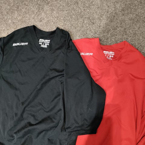 Myydään hyväkuntoiset pieneksi jääneet lasten CCM ja Bauer jääkiekon harkkapaidat (kuvan aluspuku myyty). Musta Bauer -paita koko youth M/L, CCM:n valkoinen ja musta harkkapaita koko youth S/M.