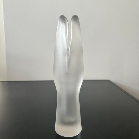 Timo Sarpanevan suunnittelema taidelasi. 13,5 cm x 4,5 cm