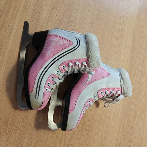 SP Lasten luistimet koko 35, valkoinen väri. Soveltuvat muun luistelun harrastamiseen. Luistimissa on perinteinen nauhakiinnitys ja terä metallia. Nauhoissa kulumaa