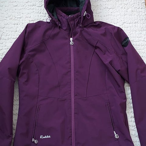 Rukkan tummansininen talvi-/toppatakki/ parka/,toppis, koko 36. Huppu, korkea kaulus, helmassa kiristysnauha. Takkia on melko vähän käytetty, hyväkuntoinen, ehjä. Olka-helma n. 70 cm ja kainalo-kainalo vähän alle 50 cm. Kelpo takki ulkoiluun, kaupungille yms