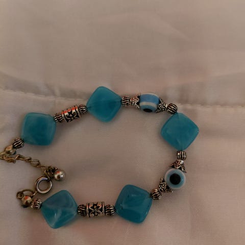Riipus, jossa linnun kynnet pitelevät lasihelmeä. Ei ketjua.