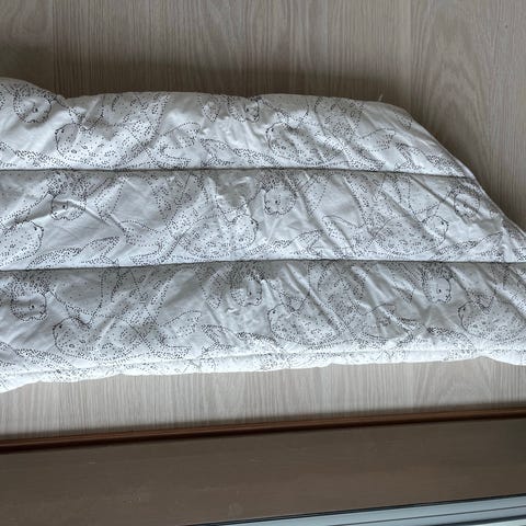Hyvä vaunuissa nukuttamiseen ja avattuna peitteenä. Hyväkuntoinen.
