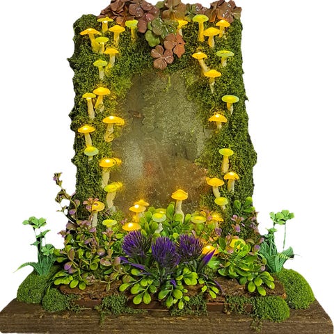 Käsityönä tehty taikasieni-koristevalaisin, joka toimii mukana tulevilla 3xAA-paristoilla. Sienet loistavat jonkun aikaa pimeässä himmeänä myös itsestään ilman valon kytkemistä.