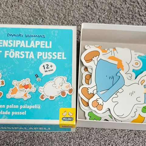 Myydään Mauri Kunnas / Herra Hakkarainen -aiheiset 2kpl palapelit. Toisessa 12 palaa, toisessa 25 palaa. Molemmat palapelit pyöreän muotoisia.