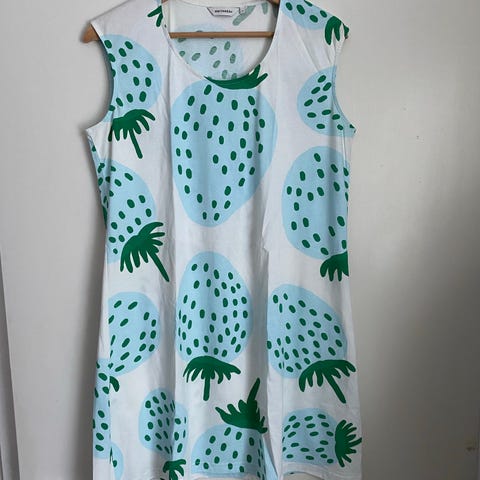 Marimekon kaunis kesämekko kokoa 42. Ollut kahdesti päällä ja kerran pesty eli erinomaisessa kunnossa. Sivuissa kivat piilotaskut.