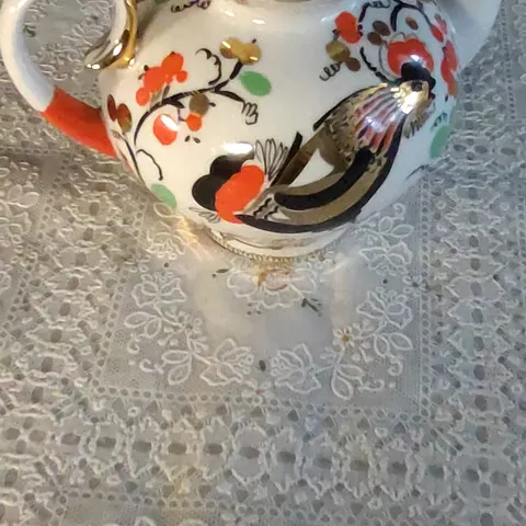 LOMONOSOV KUKKO TEEKANNU Valmistusmaa: Neuvostoliitto Mitat: Leveys 16 cm (Nokasta kahvaan), korkeus 14 cm (Kannen kanssa), paino 332 g Väri: Monivärinen Materiaali: Posliini