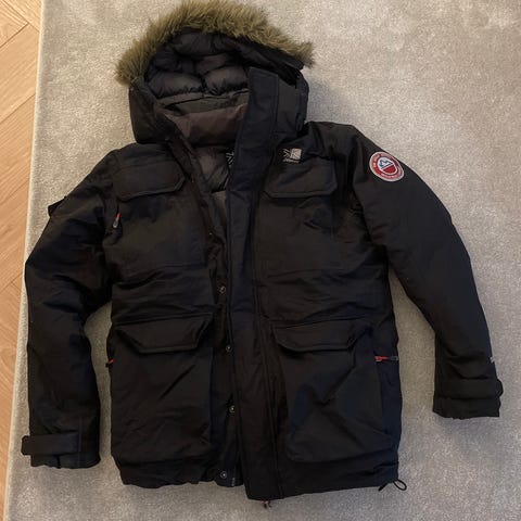 Myyn Karrimor merkin laadukkaan, mustan talviparkan koossa 18 (vastaa kokoa 40 tai pieni 42). Yhden talven käytetty, värissä pieniä haalistumia (ks. kuvat) taskun kohdalla ja hihan takapuolella. Hupun larvareunus puuttuu. Ominaisuuksiltaan aivan loistava: todella muhkea ja lämmin untuvatakki, mutta ei hiosta!