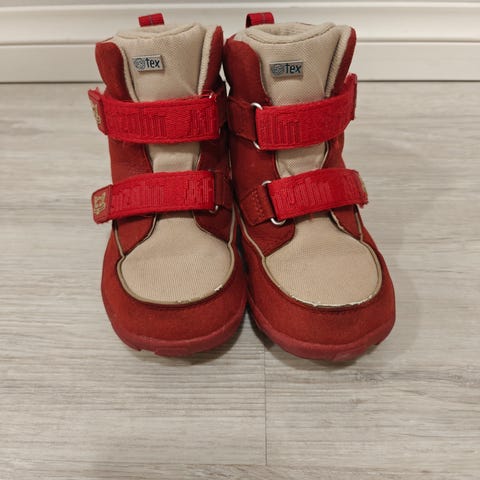 Lämpimät saappaat talveen. Pientä käytön jälkeä, mutta ehjät ja hyvässä kunnossa. Pohjalliset kadotettu johonkin. SM 17,1cm. Eläinkoti.