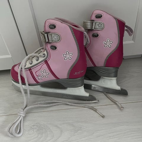 Vaaleanpunaiset tyttöjen luistimet. Merkki CCM, koko 32.