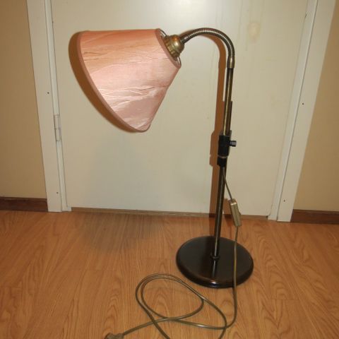 Valurautainen runko jossa kangas/muovi varjostin. Sähköjohto on uusi ja siinä on välikatkaisija. Normaali isokantainen lamppu käy tähän tuo kuvassa oleva minilamppu tulee mukaan.