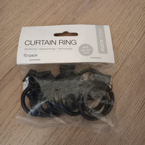 Mukaan saa yhden kpl beigen värisen verhon. Verho on toiselta puolelta musta ja on muistaakseni 250 cm korkea.