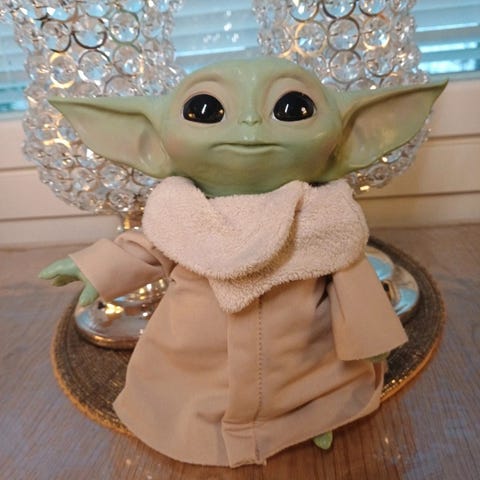 Star Wars Baby Yoda interaktiivinen lelu (F1115), beige ja vihreä väri.