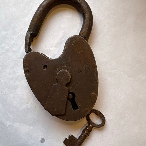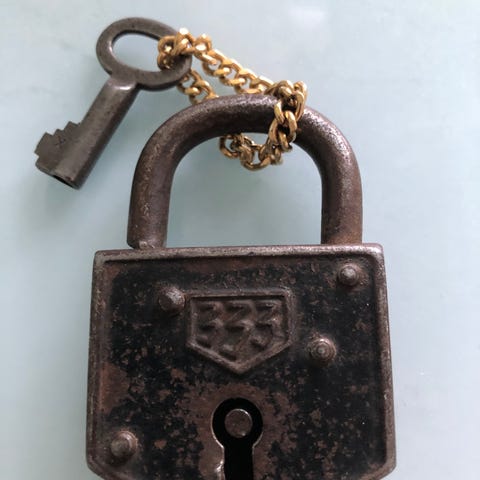 1800-lukko, avain puuttuu. Kork 9.5cm