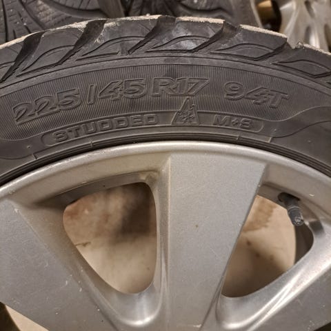 talvirenkaat 205/55-16" 5/100 toyota avensis vantein pintaa ja nastat tuntuu