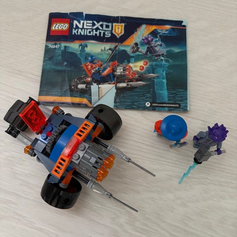 LEGO Nexo Knights 70315 Clay’s rumble blade -taisteluajoneuvo sisältää rakennettavan ajoneuvon ja minihahmot. Sarja kuuluu Nexo Knights -teemaan ja sopii 8-14-vuotiaille. Sisältää ohjekirjan ja paketin. Yhdeltä hahmolta puuttuu kypärä ja kaksi Nexo Power laattaa puuttuu.