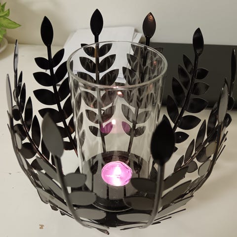 Metallinen kynttilänjalka lasisilla varjostimilla