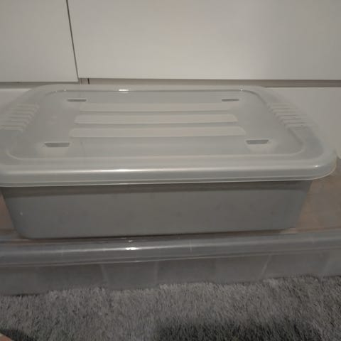 2kpl sängynaluslaatikoita. Ehjät ja muutenkin ok-kuntoiset. Kannessa pieni lokero esim. hajustepussille, jos sellaista tykkää käyttää, mutta ei ole koskaan käytetty. Voi ostaa myös yksittäin 5€/kpl.